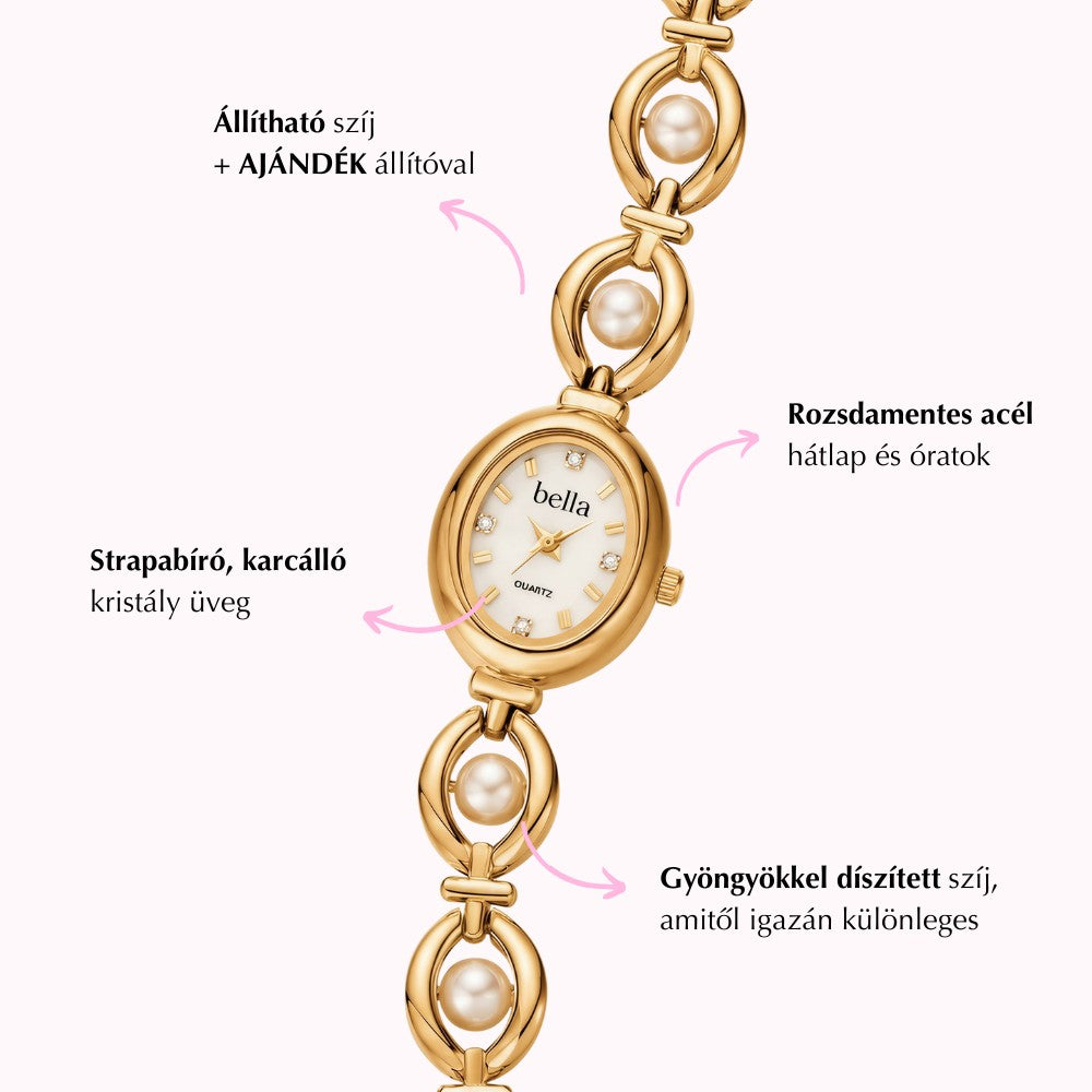 Bella Amalfi - Arany színű gyöngyös női vintage óra