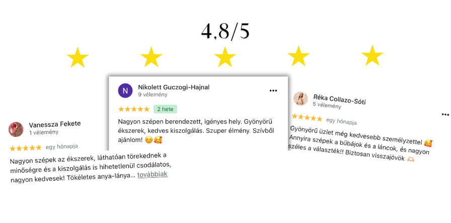 "Kedvesek voltak, mindenben segítettek. Az ékszereket azóta is nagyon szeretjük, ajánlani tudom!"